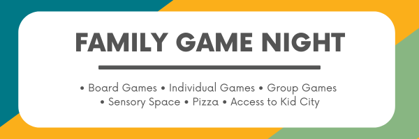 Family Game Night is for families affected by autism to have a fun night in the community. The event will feature board, individual, and group games for ALL ages to enjoy. Come play a game with your family, meet new families for a group game, or chat with each other, having fun at Kid City.